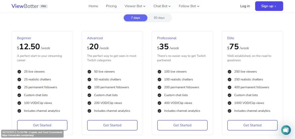 Viewbotter offers cheaper plans for boosting Twitch viewers, mainly by using bots. It’s a quick way to make your stream look active, but the viewers are not real or engaged. This can help with short-term visibility but doesn’t support real growth. Since the viewers aren’t genuine, it may also risk your channel’s long-term health.