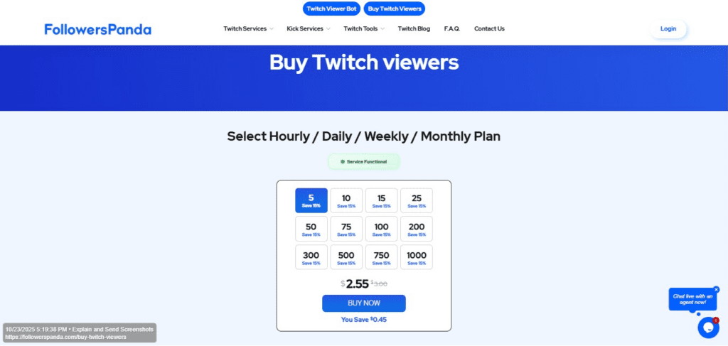 FollowersPanda is one of the best site to buy Twitch viewers and grow your channel by boosting your viewer count effectively. Followerspanda provides real, active viewers not bots to help you reach Twitch Affiliate and attract more organic viewers. The goal is to make your live stream look more active, draw real people, and build a lively community of genuine viewers. FollowersPanda also offers chatters and good customer support, aiming to give streamers a safe and effective way to grow their Twitch presence.